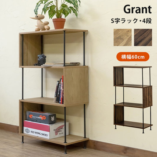 Grant S字ラック 4段 NA/WAL ナチュラル ウォールナット sk-ply05 店舗 カフェ ラウンジ ロビー ホテル 法人 オープンラック 本棚 ラック カラーボックス 収納 家具 北欧 モダン 家具 インテリア ナチュラル テイスト 新生活 オススメ おしゃれ
