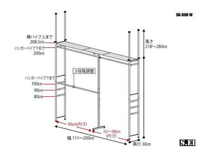 つっぱり クローゼット 壁面収納 ハンガーラック ハイタイプ ワイド 奥行30cm シルバー ホワイト ブラック ツッパリ 突っ張り 棚 ツッパリ 突っ張り sei-sk-80h-w-ch 店舗 カフェ ラウンジ ロビー ホテル 法人 ハンガーラック コートハンガー 本棚 ラック カラーボックス 収納 家具 北欧 モダン 家具 インテリア ナチュラル テイスト 新生活 オススメ おしゃれ