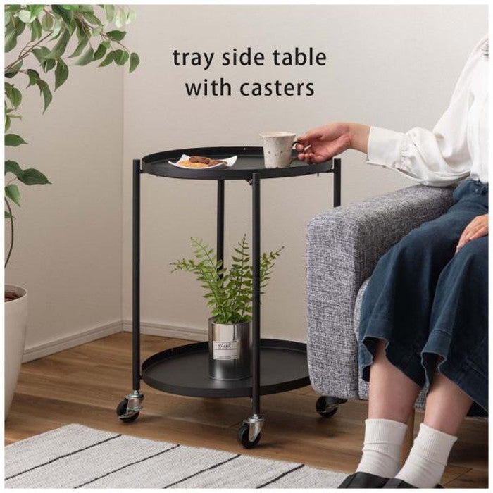 サイドテーブル ブラック グレー ホワイト W47.5×D47.5×H59 サイドテーブル トレーテーブル ディスプレイ おぼん トレー 取り外し キャスター付き ストッパーあり 軽量 シック シンプル 北欧 おしゃれ かわいい ブラック 黒 azu-lfs-884 店舗 カフェ ラウンジ ロビー ホテル 法人 サイドテーブル ナイトテーブル テーブル 北欧 モダン 家具 インテリア ナチュラル テイスト 新生活 オススメ おしゃれ
