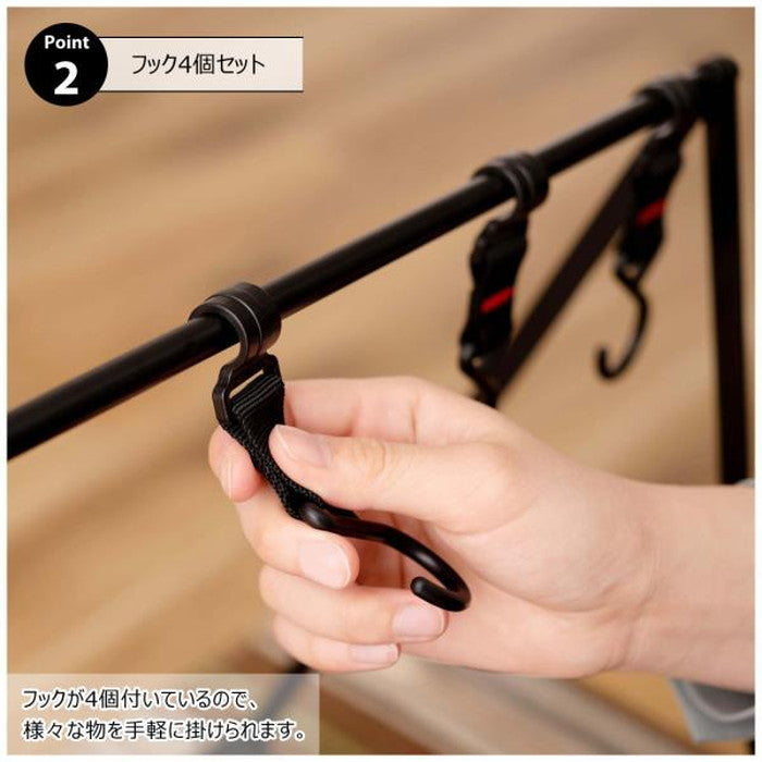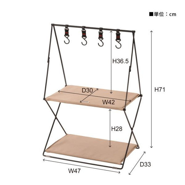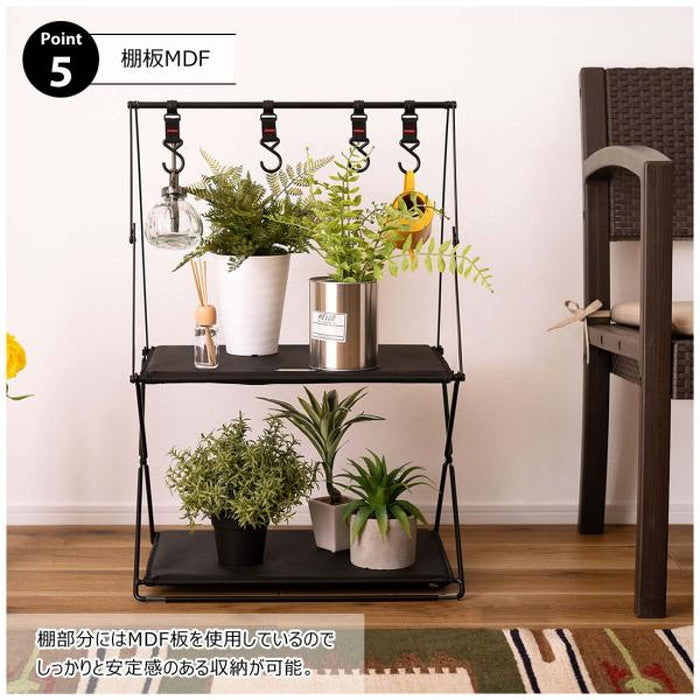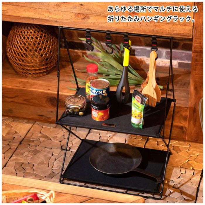 | 商品説明 | ●あらゆる場所でマルチに使えるハンギングラック。●場所を選ばず、散らかりがちな小物類を手軽にまとめて収納。●フックが付いていますので、様々な物を手軽にかけることができます。●屋内はもちろん、アウトドア・キャンプル・レジャーでも大活躍。●コンパクトに折りたたむことができるので移動や収納も邪魔になりません。●吊り下げ収納ができる可動式ハンガーフックは取り外しが可能(フック4個付き)。●棚部分にはMDF板を使用しているので、しっかりと安定感のある収納が可能。サイドテーブルにも便利です。●玄関回りに置いてシューズラック兼小物収納としても使うのもおすすめです。 |