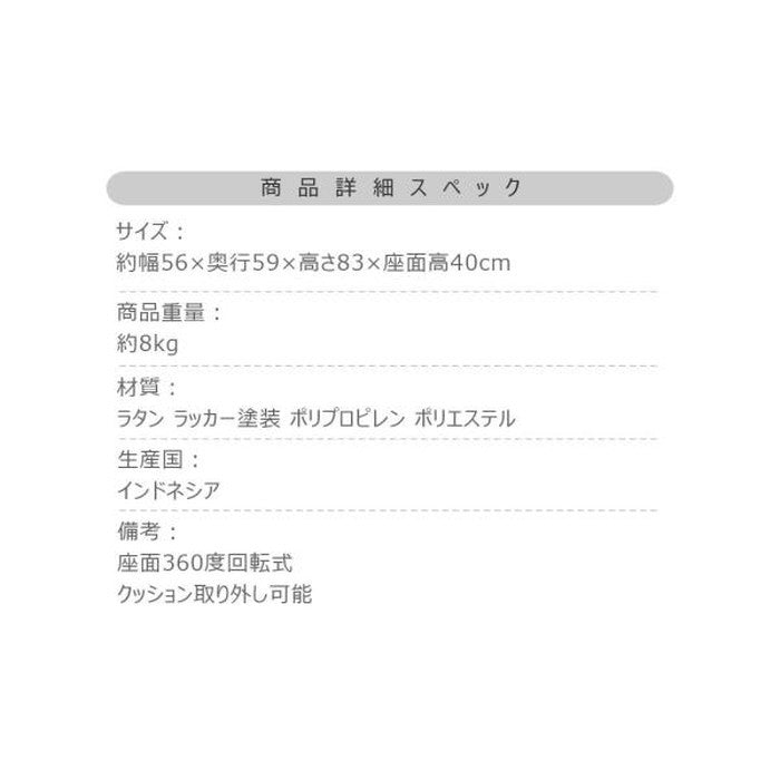| 素材 | ラタン ラッカー塗装 ポリプロピレン ポリエステル |