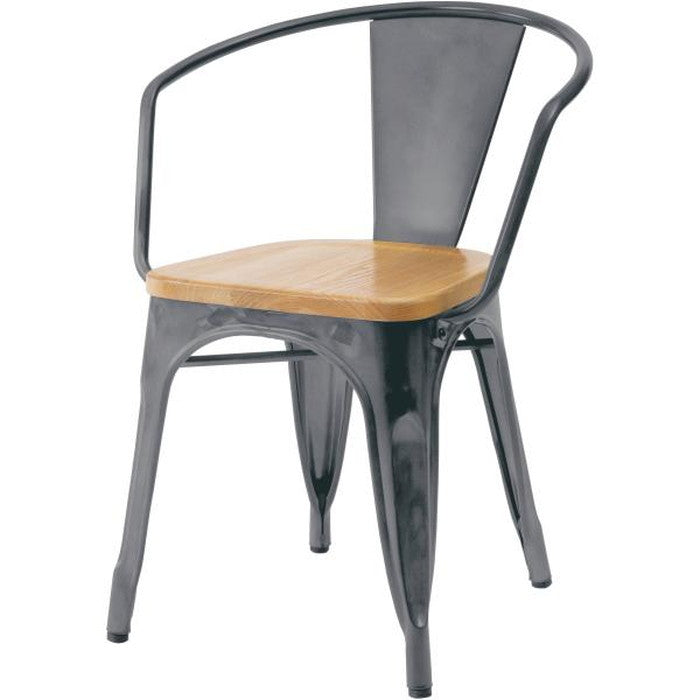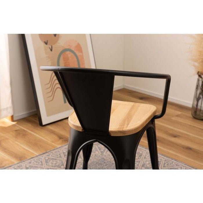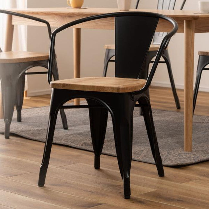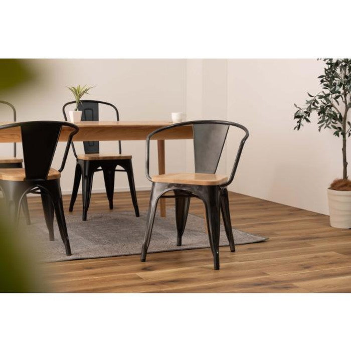 アームチェア ダイニング チェア ブラック シルバー W55×D54×H73×SH44.5 ダイニングチェア チェア チェアー イス 椅子 背もたれ アームレスト おしゃれ アイアン 木製 天然木 完成品 シンプル インダストリアル azu-pc-263 店舗 カフェ ラウンジ ロビー ホテル 法人 ダイニングチェア イス チェア 北欧 モダン 家具 インテリア ナチュラル テイスト 新生活 オススメ おしゃれ