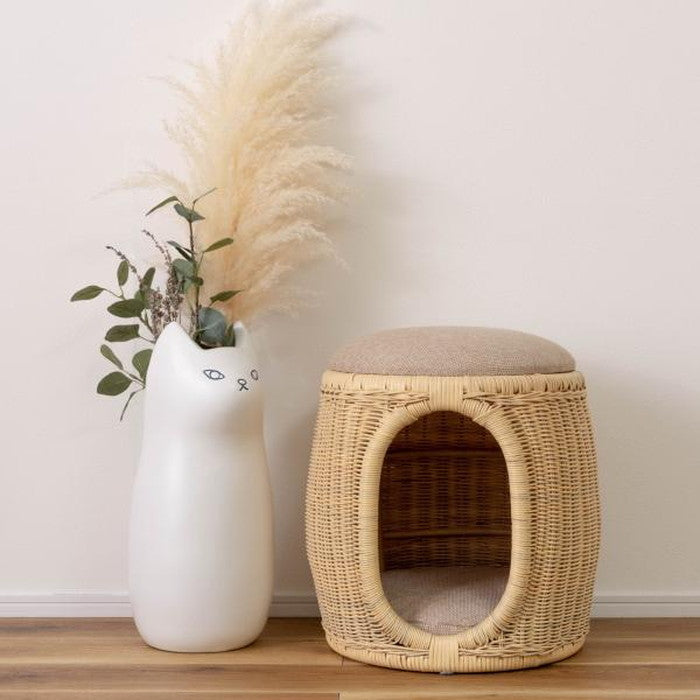 | 商品説明 | ●入ったり乗ったり座ったりと、ペットの可愛らしい姿を楽しむことができるスツール。●中敷きのクッションやフタが外れる仕様になっており、物を入れたり植物を飾ったりとアイデア次第で様々な使い方ができます。●軽やかな編み目とナチュラルテイストな色味が優しい雰囲気を作り出してくれます。※小型犬・猫などの小動物向けです |