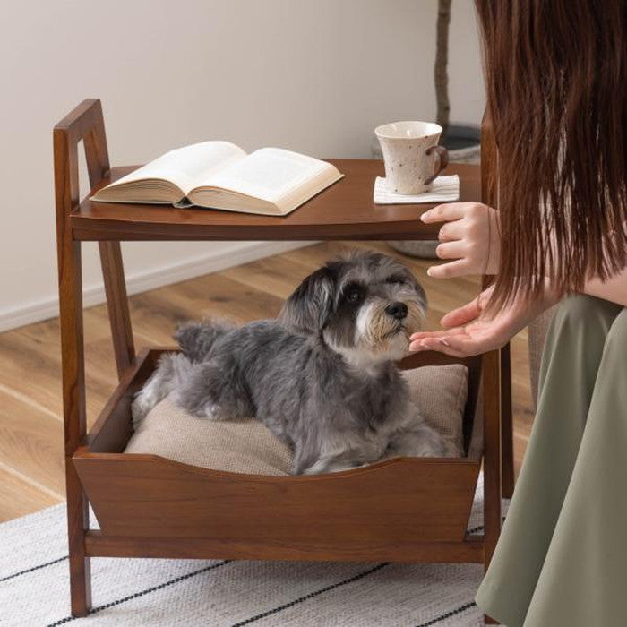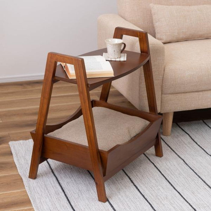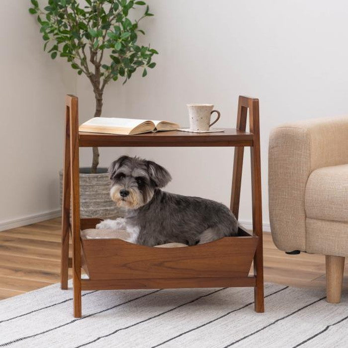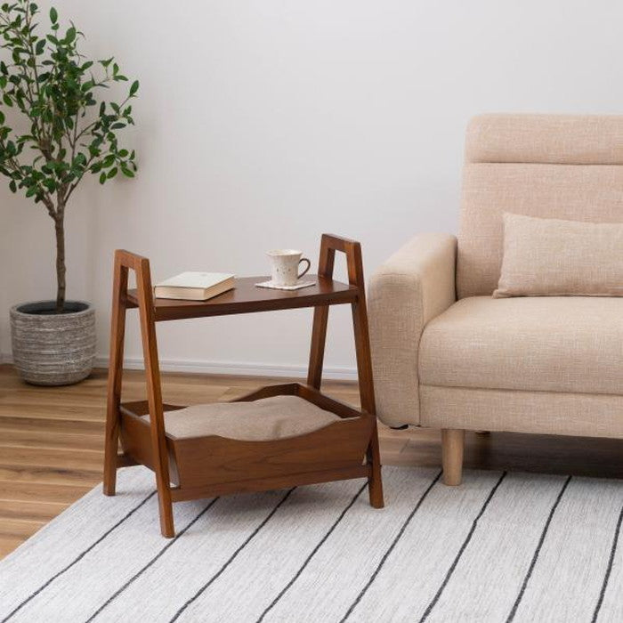 ペット サイドテーブル ブラウン W54×D40×H60 サイドテーブル テーブル ペットベッド ペット 犬 猫 ウサギ シンプル おしゃれ 持ち手 ハンドル クッション付き 木製 天然木 花台 ディスプレイ ナチュラル ブラウン リビング 高さ60cm 個体差 azu-pet-67 店舗 カフェ ラウンジ ロビー ホテル 法人 サイドテーブル ナイトテーブル テーブル 北欧 モダン 家具 インテリア ナチュラル テイスト 新生活 オススメ おしゃれ