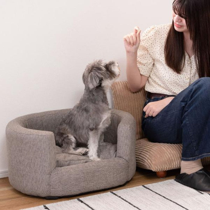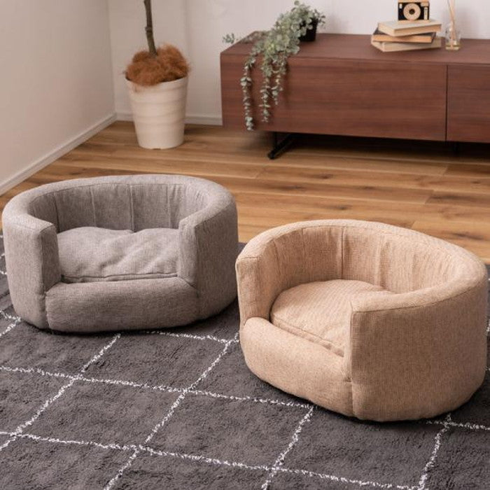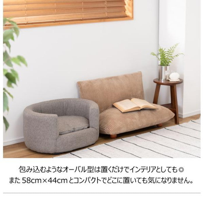| 商品説明 | ●ペット用の小ぶりで包み込むような背もたれが特徴のソファ。●特別なペットの居場所を作ります。●落ち着いたシンプルなカラーリングとコロンと丸みを帯びた形状がお洒落。●ペットとの生活がより充実したものになる可愛いソファ。●優しいラインのオーバル型/包み込むようなオーバル型はインテリアとしても取り入れやすいデザイン。設置しやすいコンパクトサイズも魅力。●ちょうどいい高さ/ペットとのふれあいにちょうどいい高さに設計されています。床に座っても、座椅子やソファに座ってもちょうどいい高さでペットと空間を共有できます。●クッションは取り外し可能/カバーリング仕様でクッションからもカバーを取り外すことができます。●細かなディティール/座面にもフレームにもクッション性を持たせています。細かなディティールまでこだわり、作り込まれています。 |