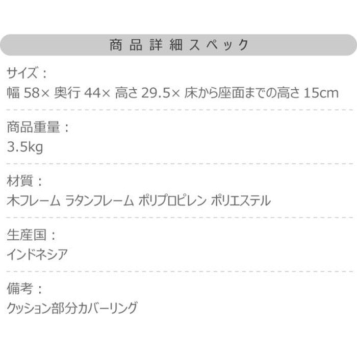 | 素材 | 木フレーム ラタンフレーム ポリプロピレン ポリエステル |
