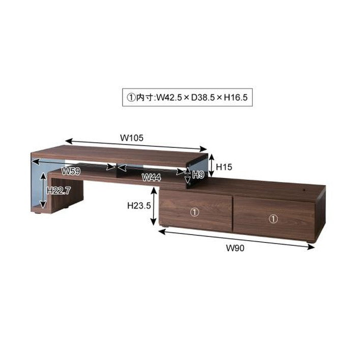 フレキシブルTVボード テレビ台 テレビボード 105 ブラウン W105-181×D41×H39 azu-so-224 店舗 カフェ ラウンジ ロビー ホテル 法人 テレビ台 ローボード 収納 家具 北欧 モダン 家具 インテリア ナチュラル テイスト 新生活 オススメ おしゃれ
