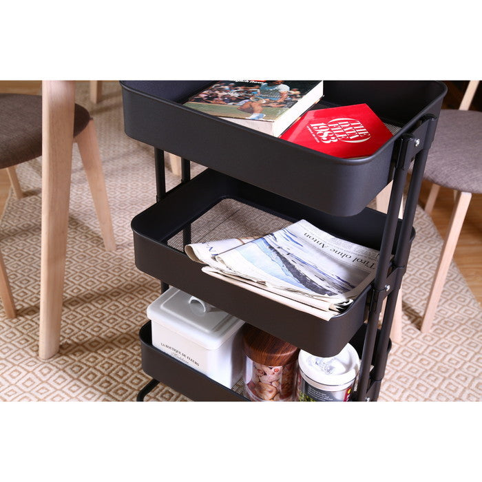 キッチンワゴン バスケット3段 ブラック LX-0306-3 fj-14267 店舗 カフェ ラウンジ ロビー ホテル 法人 キッチンワゴン キッチン収納 収納 家具 北欧 モダン 家具 インテリア ナチュラル テイスト 新生活 オススメ おしゃれ