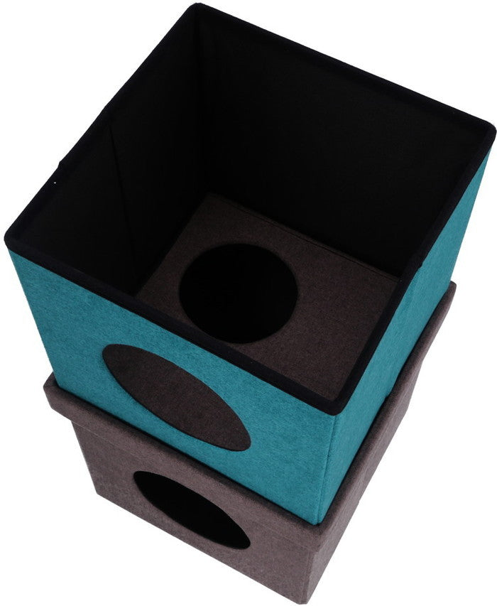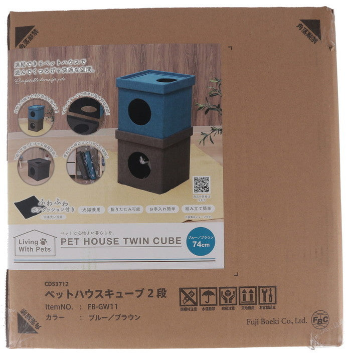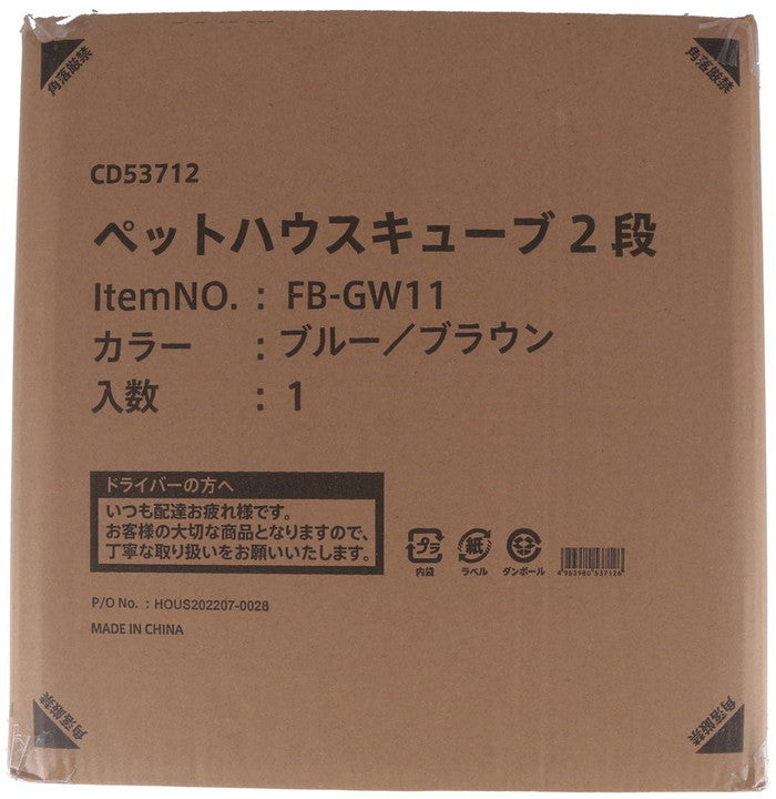 ペットハウスキューブ 2段 BL/BR ブルー/ブラウン 375×375×740 fj-53712 店舗 カフェ ラウンジ ロビー ホテル 法人 ハウス 犬小屋 犬小屋 ケージ ゲート 犬用品 ペット ペットグッズ 北欧 モダン 家具 インテリア ナチュラル テイスト 新生活 オススメ おしゃれ