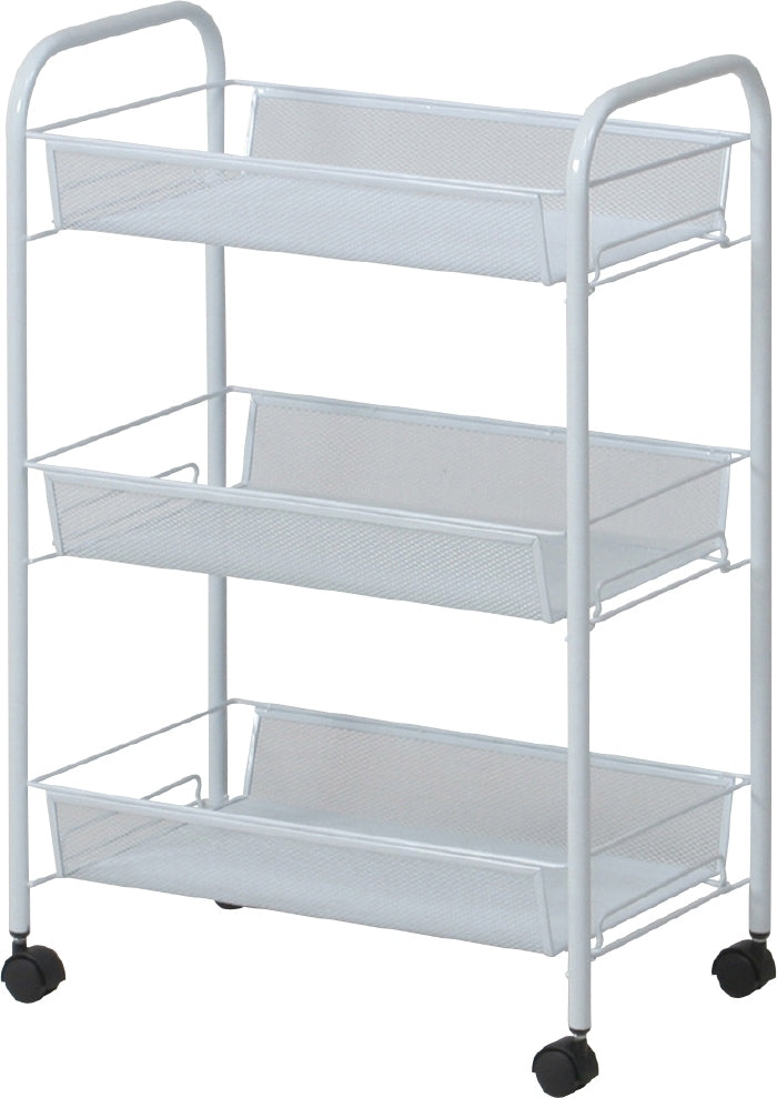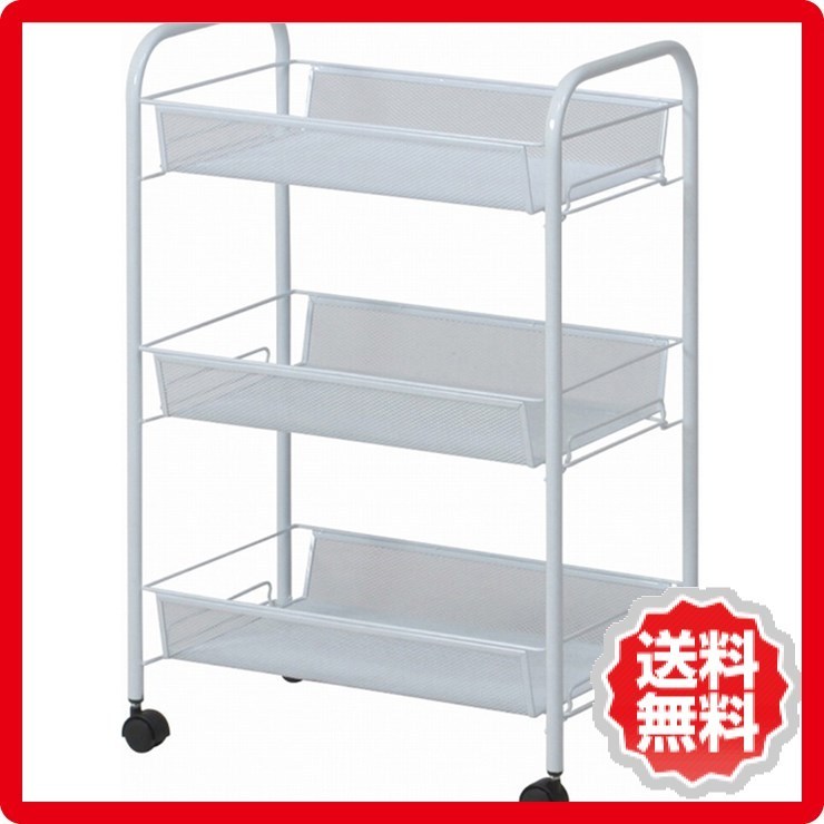 メッシュワゴン トローリー キャスター付き3段 WH ホワイト fj-69292 店舗 カフェ ラウンジ ロビー ホテル 法人 サイドワゴン ファイルワゴン オフィス収納 オフィス家具 北欧 モダン 家具 インテリア ナチュラル テイスト 新生活 オススメ おしゃれ