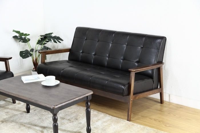 | 素材 | ■構造部材:天然木(ラバーウッド) ■張り材:合成皮革(PU) ■クッション材:ウェービングベルト/ウレタンフォーム ■背面:ウレタンフォーム ■脚部:天然木(ラバーウッド) |