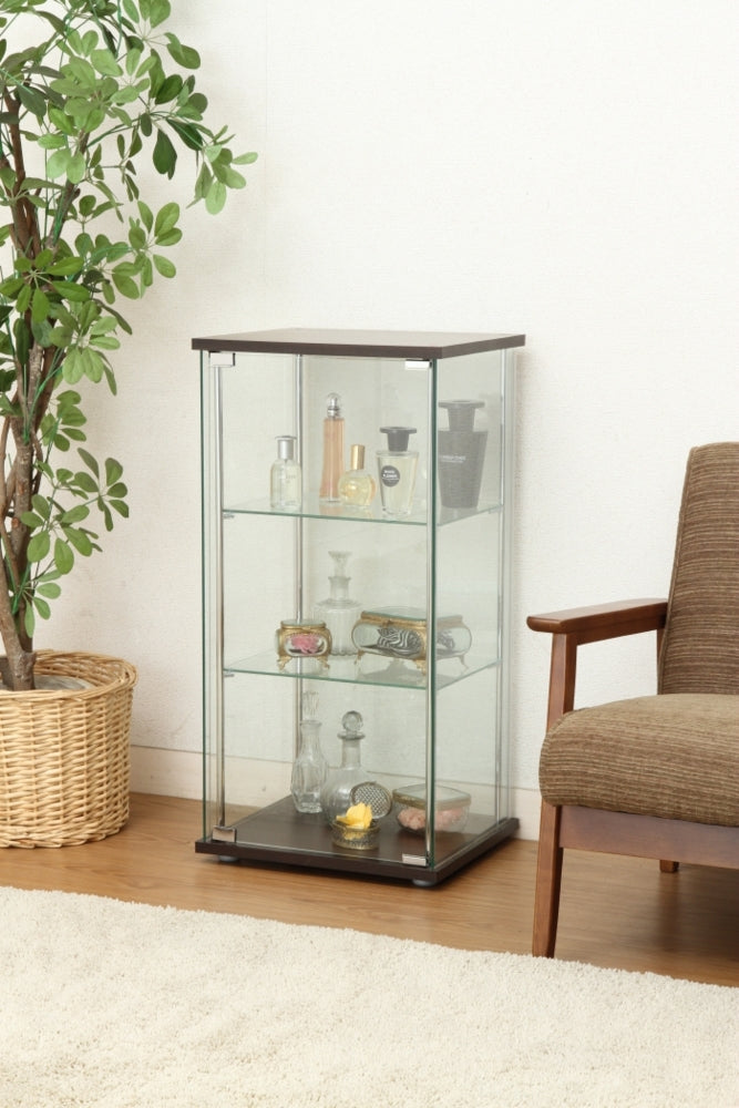 ガラスコレクションケース 3段 ブラウン fj-96049 店舗 カフェ ラウンジ ロビー ホテル 法人 オープンラック 本棚 ラック カラーボックス 収納 家具 北欧 モダン 家具 インテリア ナチュラル テイスト 新生活 オススメ おしゃれ
