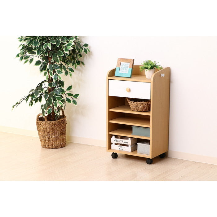 | サイズ | 商品サイズ:幅415×奥行290×高さ750mm 耐荷重(全体)20kg 耐荷重(棚板)5kg 引出内寸350x230x105mm(80mm) |