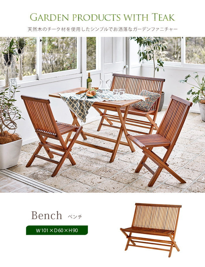 | 商品説明 | ■ 折りたたみ式 天然木のチーク材を使用したシンプルなベンチ。■組立式なのでシーズンオフの収納にも困りません |