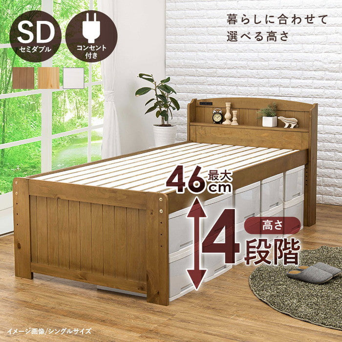 セミダブル ミドルベッド MB-5116SD ナチュラル ライトブラウン ホワイトウォッシュ 幅124.5×奥行209×高さ91×床面高38/44/50/56cm hgs-3000000479 店舗 カフェ ラウンジ ロビー ホテル 法人 ベッドフレーム ベッド 北欧 モダン 家具 インテリア ナチュラル テイスト 新生活 オススメ おしゃれ