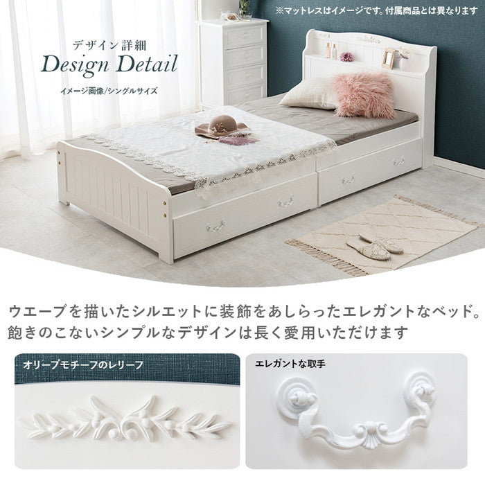 | 商品説明 | ■組立式■2口コンセント付■引出し付■ボンネルコイル ウェーブを描いたシルエットに装飾をあしらったエレガントなベッド。衣類や小物などを収納できる引出し付き。しっかりとした寝心地のボンネルコイルマットレスセット |