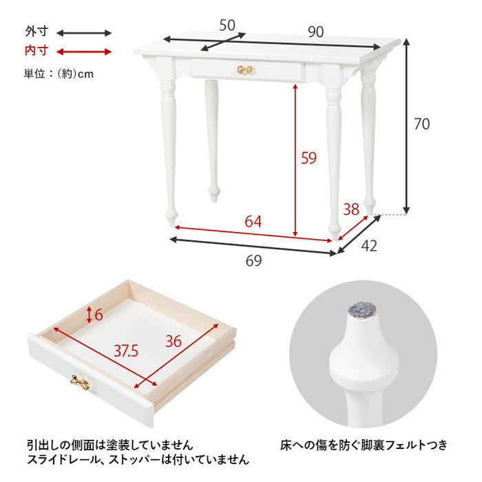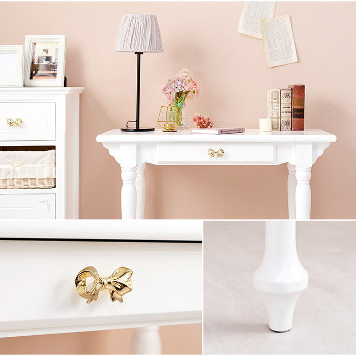 | 商品説明 | ■組立式 リボンの形の可愛い取っ手や細部のデザインにもこだわったデスクテーブル。便利な引出付き |