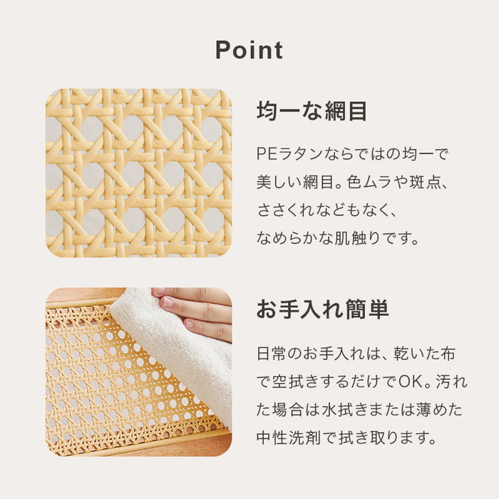 | 素材 | 主材:天然木、天板:(ナチュラル)天然木化粧繊維板・(ホワイト)繊維板、張地:ポリエステル、網部:ポリエチレン |