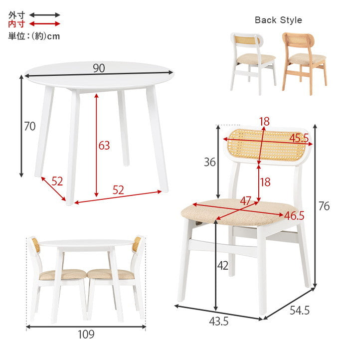 | 商品説明 | ■組立式 ラタン調背もたれのチェアと丸テーブルが可愛いダイニング3点セット。コンパクトで場所を取らず置きやすいサイズ感。 |