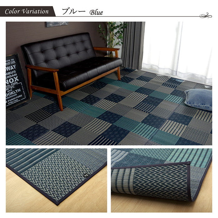 敷物 花ござ 国産 純国産 日本製 い草 モダン 抗菌防臭 自然素材 パッチワーク 江戸間10畳 約435×352cm ベージュ ブルー ブラウン ihk-1080040020802 店舗 カフェ ラウンジ ロビー ホテル 法人 カーペット ラグ カーペット マット 北欧 モダン 家具 インテリア ナチュラル テイスト 新生活 オススメ おしゃれ