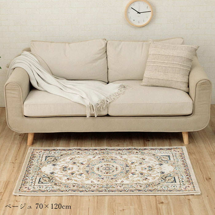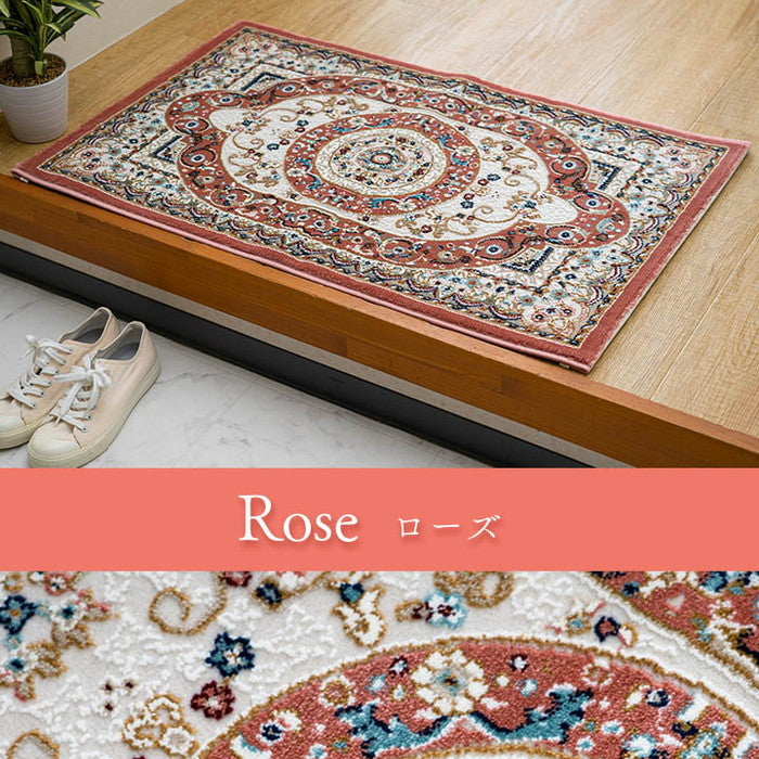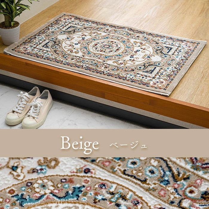 玄関 マット トルコ製 ウィルトン 織り クラシカル柄 エレガンス柄 上品 ヒートセット加工 立体感 高目付 肌触り柔らか 抗菌防臭 消臭 丈夫 へたりにくい ソファー前用 ベッドサイド用 約50×80cm ベージュ ブルー ローズ ihk-1311660021701 店舗 カフェ ラウンジ ロビー ホテル 法人 玄関マット マット カーペット マット 畳 北欧 モダン 家具 インテリア ナチュラル テイスト 新生活 オススメ おしゃれ