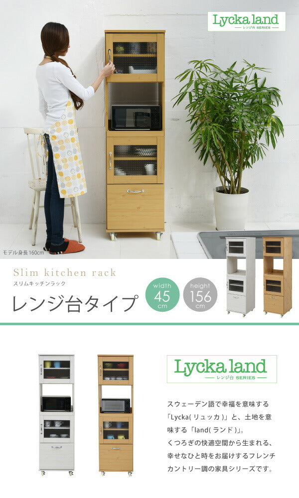 スリム レンジ台 食器棚 レンジラック 幅 45 H156 キッチン 収納 隙間収納 棚 収納棚 スライド キッチンラック キッチン棚 ラック jk-fll-0066 店舗 カフェ ラウンジ ロビー ホテル 法人 レンジボード キッチン収納 収納 家具 北欧 モダン 家具 インテリア ナチュラル テイスト 新生活 オススメ おしゃれ