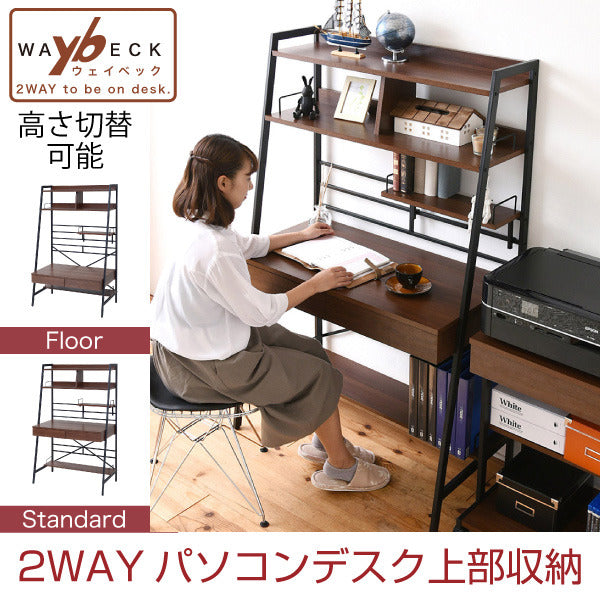 2WAY パソコンデスク 上部収納 幅 90cm 高さ調節 多機能デスク 木製 本棚付き ワーキングデスク パーソナルデスク シェルフデスク jk-kks-0014 店舗 カフェ ラウンジ ロビー ホテル 法人 パソコンデスク デスク 北欧 モダン 家具 インテリア ナチュラル テイスト 新生活 オススメ おしゃれ