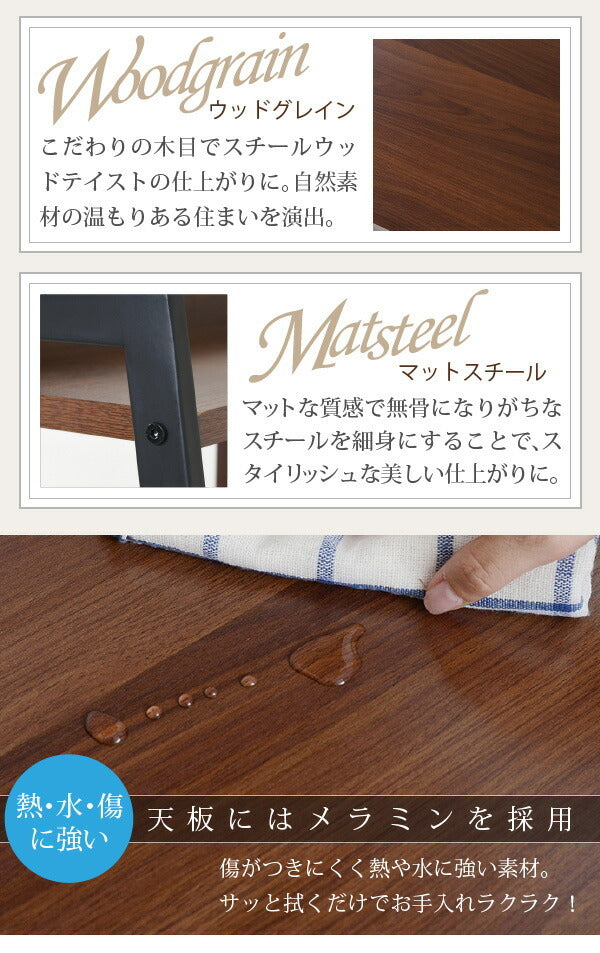 | 素材 | [本体]合成樹脂化粧パーティクルボード(メラミン樹脂) [フレーム]スチール(粉体塗装) |