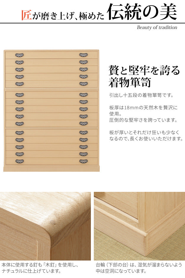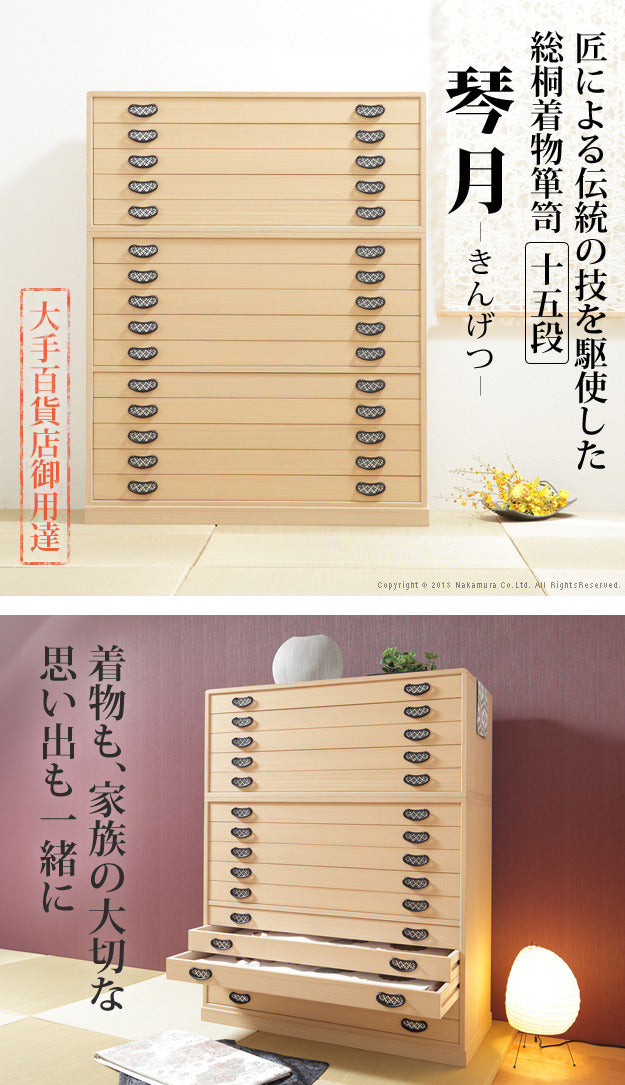 桐たんす 着物 収納 国産 総桐着物箪笥 15段 琴月 きんげつ 桐箪笥 桐タンス 衣装タンス 衣装箱 桐衣裳ケース たんす チェスト 桐 桐天然木 たとう紙 保管 引出し 和箪笥 和たんす 和タンス 整理タンス 日本製 mu-12400012 店舗 カフェ ラウンジ ロビー ホテル 法人 タンス チェスト 収納 家具 北欧 モダン 家具 インテリア ナチュラル テイスト 新生活 オススメ おしゃれ
