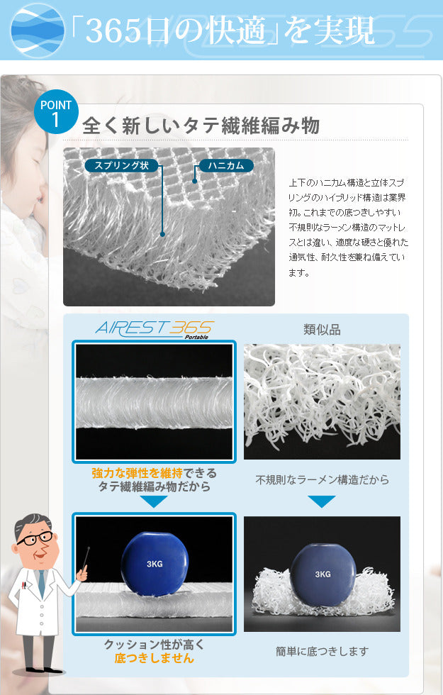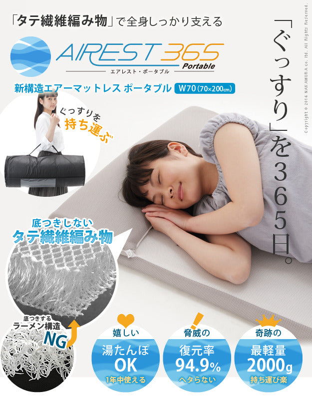 新構造エアーマットレス エアレスト365 ポータブル 70×200cm 高反発 マットレス エアーマット ベッドマットレス 丸めて収納 通気性 耐熱性 耐久性 湯たんぽOK 軽量 へたらない 1年中使える ほこりが出にくい アレルギー対策 洗える 日本製 体圧分散 mu-12600004 店舗 カフェ ラウンジ ロビー ホテル 法人 マットレス 寝具 北欧 モダン 家具 インテリア ナチュラル テイスト 新生活 オススメ おしゃれ