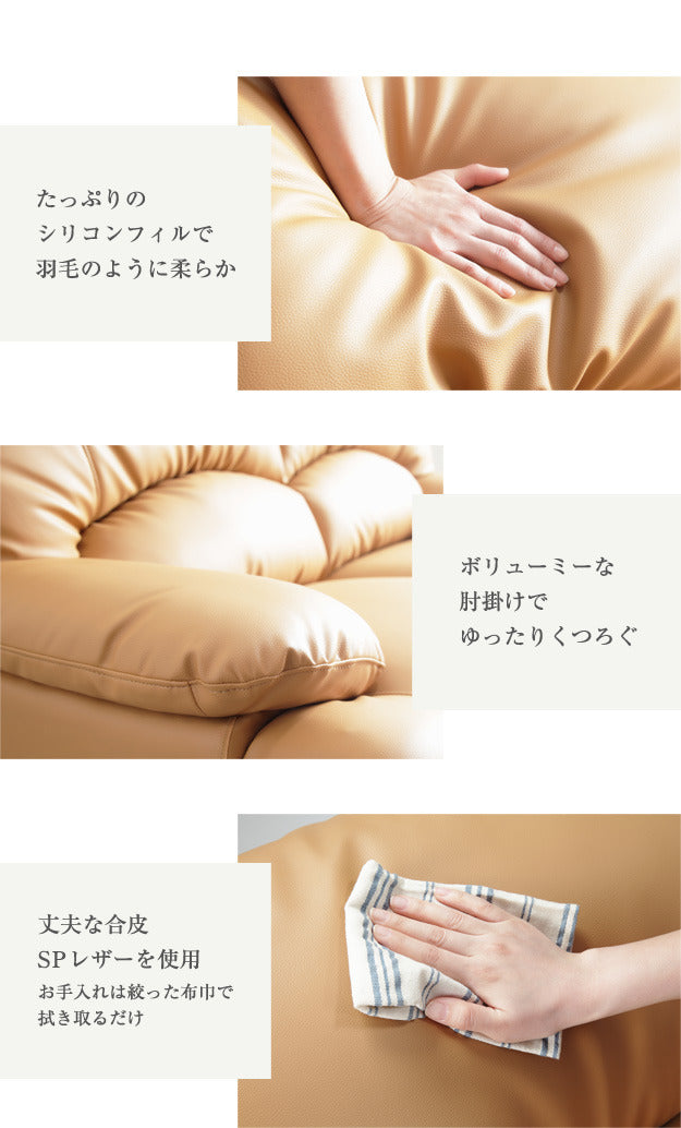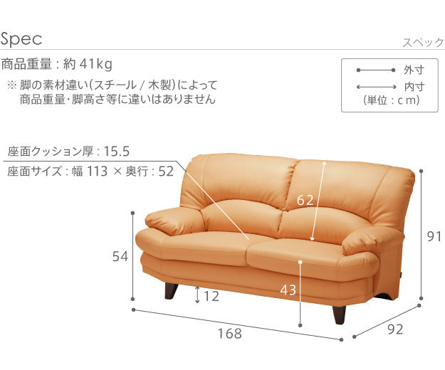 | 商品説明 | 【カラーバリエーション】 ダークブラウン・ブラウン・ミルクホワイト・グレー・ブラック・レッド 【脚部】 スチール・木製 【仕様】 張地:合成皮革 座面:低反発ウレタン・ウレタンフォーム・チップウレタン・シリコンフィル・Sバネ・ポケットコイル 背面:低反発チップウレタン・シリコンフィル・ウェービングベルト 構造部材:天然木・合板 脚部:スチール/天然木 ◎一部組立(脚部取付) 【サイズ】 幅168x奥行92x高さ91cm 重量:約41kg 座面高:43cm 座面幅:113cm 座面奥行き:52cm 背面高さ:62cm 肘掛けまで高さ:54cm ソファ下高さ:12cm ※一つひとつを職人が手作業で作っているため、数値に若干の個体差があります。 |