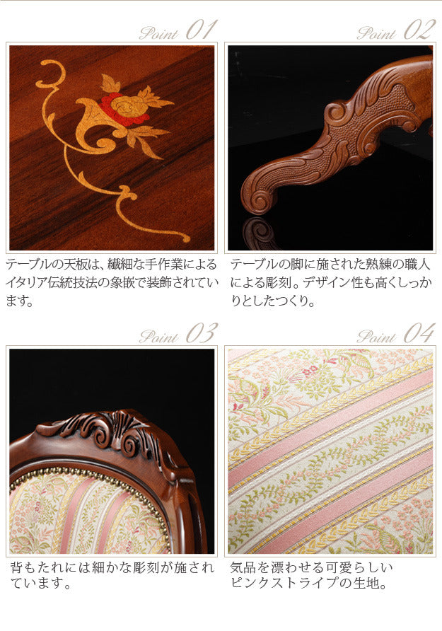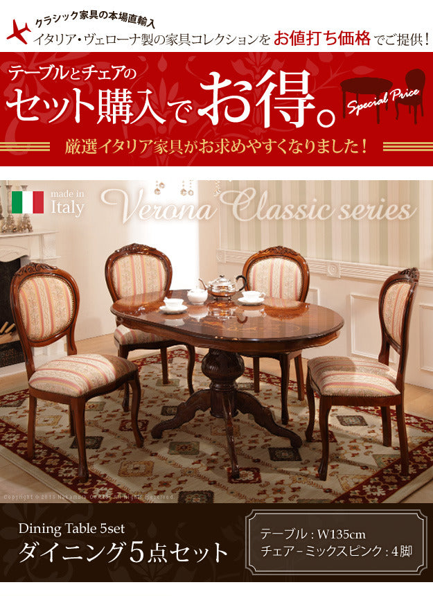 イタリア 家具 ヨーロピアン ヴェローナクラシック ダイニング 5点セット:テーブル幅135cm+チェア-ミックスピンク4脚 猫脚 ヨーロッパ家具 クラシック 輸入家具 アンティーク風 イタリア製 ブラウン おしゃれ 高級感 エレガント 木製 天然木 リモート テレワーク mu-42200127 店舗 カフェ ラウンジ ロビー ホテル 法人 ダイニングセット 北欧 モダン 家具 インテリア ナチュラル テイスト 新生活 オススメ おしゃれ