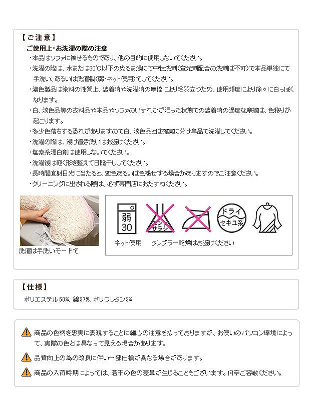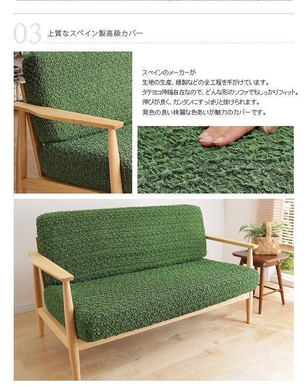 | 商品説明 | 商品について:スペイン製の生地を使用したストレッチ素材のソファカバー。シンプルな無地ながら質感の良い生地でソファに座るのが楽しくなりそう。 適合ソファ:幅90?125cm、高さ60cmまで対応 材質:ポリエステル60%、綿37%、ポリウレタン3% |