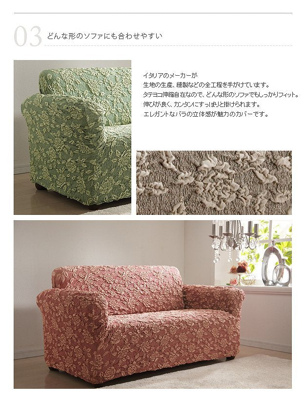 イタリア製 ストレッチフィットソファカバー エレガントローズ 肘掛け付き 3人掛 ソファカバー 3人掛け 肘付き mu-61000988 店舗 カフェ ラウンジ ロビー ホテル 法人 ソファカバー イスカバー 北欧 モダン 家具 インテリア ナチュラル テイスト 新生活 オススメ おしゃれ