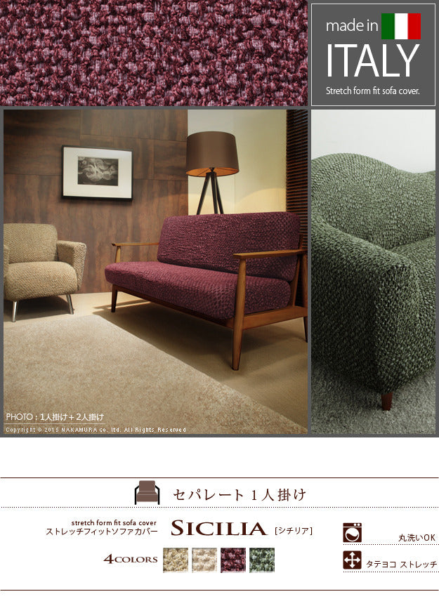 ソファーカバー ストレッチ 一人掛け イタリア製ストレッチフィットソファカバー シチリア セパレート 1人掛け用 伸縮 カバーリング 洗える mu-61001088 店舗 カフェ ラウンジ ロビー ホテル 法人 ソファカバー イスカバー 北欧 モダン 家具 インテリア ナチュラル テイスト 新生活 オススメ おしゃれ