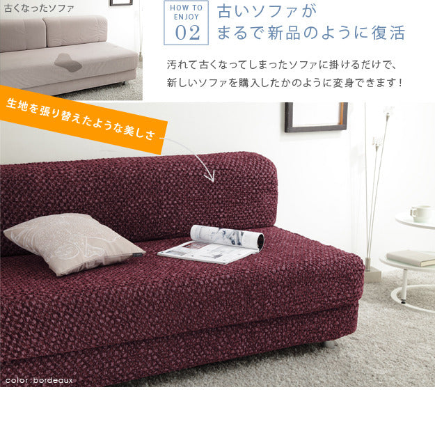| 商品説明 | 【カラーバリエーション】 キャメル・ホワイト・ボルドー・グリーン 【仕様】 材質:アクリル65%、ポリエステル20%、綿10%、ポリウレタン5% 【サイズ】 ■適応ソファサイズ 座面幅:約40?60cm 高さ:60cmまで 奥行:85cm程度 ※奥行はソファの高さと座面幅のバランスによって異なります。 |