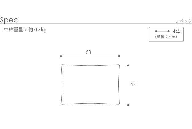 | 商品説明 | 【仕様】 側地:ポリエステル80%、綿20%(高密度・ピーチスキン加工・抗菌防臭SEKラベル付) 中綿:ポリエステル100% 【サイズ】 63x43cm 重量:約0.8kg |