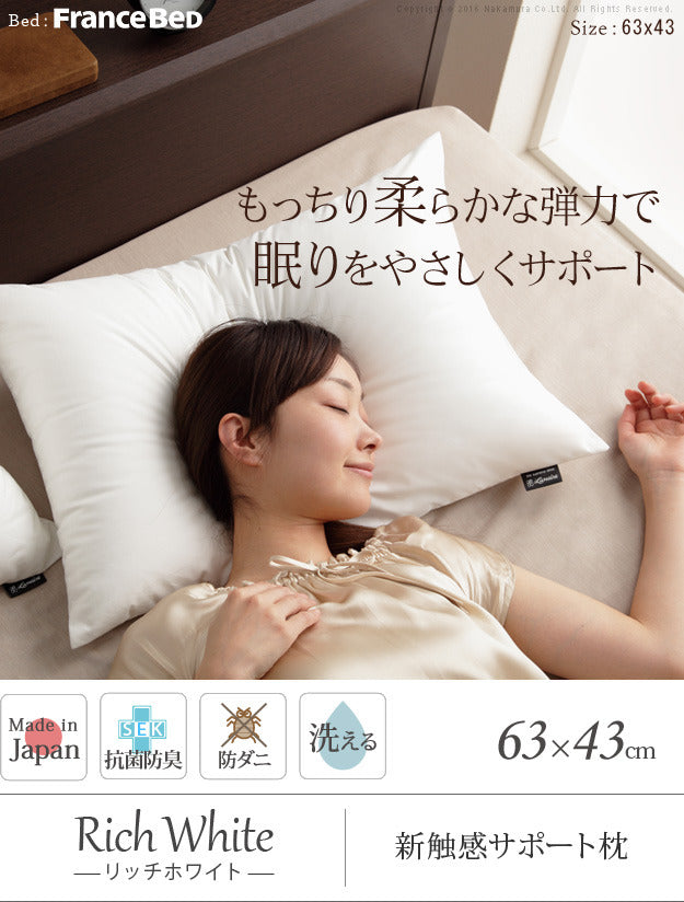 枕 低反発 洗える リッチホワイト寝具シリーズ 新触感サポート枕 63x43cm 43×63 国産 日本製 快眠 安眠 抗菌 防臭 mu-90400029 店舗 カフェ ラウンジ ロビー ホテル 法人 枕 枕 抱き枕 寝具 北欧 モダン 家具 インテリア ナチュラル テイスト 新生活 オススメ おしゃれ