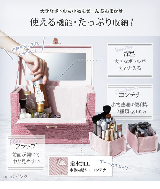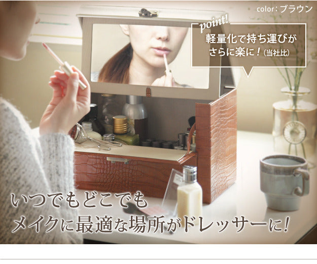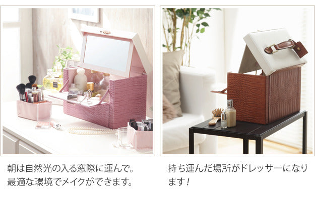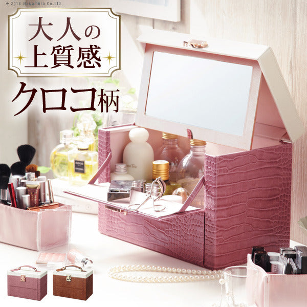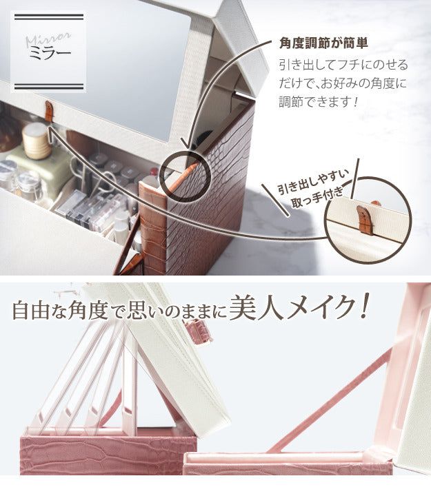 メイクボックス 鏡付き バニティ ワタシ流にカスタマイズできる クロコ柄メイクボックス クラッセ クロコダイル 大容量 コスメボックス化粧台 バニティケース コスメ ギフト 軽量 mu-a0800028 店舗 カフェ ラウンジ ロビー ホテル 法人 メイクボックス メイク道具 ケアグッズ 美容 コスメ 香水 北欧 モダン 家具 インテリア ナチュラル テイスト 新生活 オススメ おしゃれ