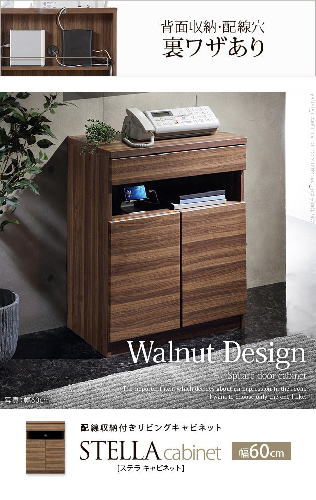 キャビネット 北欧 チェスト 配線収納付きリビングキャビネット ステラキャビネット 幅60cm ファックス台 電話台 ルーター収納 Fax台 モデム収納 プリンターラック プリンター台 チェスト ウォールナット 木目調 リビング収納 引き出し おしゃれ mu-f0800452 店舗 カフェ ラウンジ ロビー ホテル 法人 キャビネット コンソール 収納 家具 北欧 モダン 家具 インテリア ナチュラル テイスト 新生活 オススメ おしゃれ