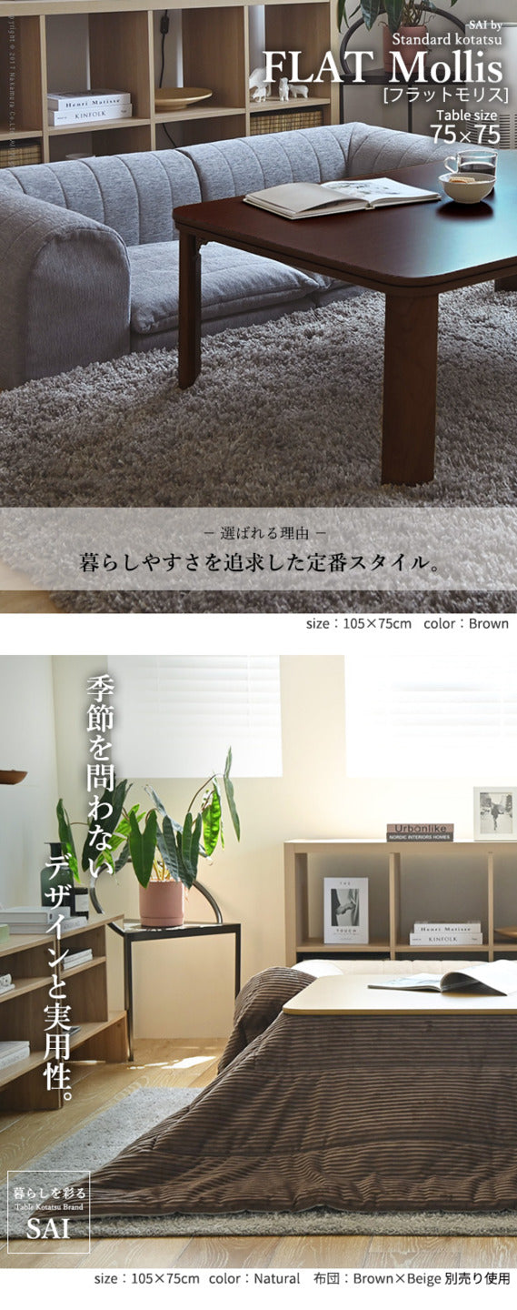 フラットヒーター折れ脚こたつ フラットモリス 75x75cm SAI 彩 正方形 テーブル 折りたたみ おしゃれ 北欧 コタツ 炬燵 フラットヒーター リビングテーブル ローテーブル 節電 省エネ 高さ調節 継ぎ脚 北欧 木製 木目 ブラウン ナチュラル ベージュ テレワーク mu-g0100130 店舗 カフェ ラウンジ ロビー ホテル 法人 電気こたつ こたつ 季節 空調家電 家電 北欧 モダン 家具 インテリア ナチュラル テイスト 新生活 オススメ おしゃれ