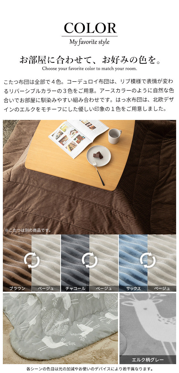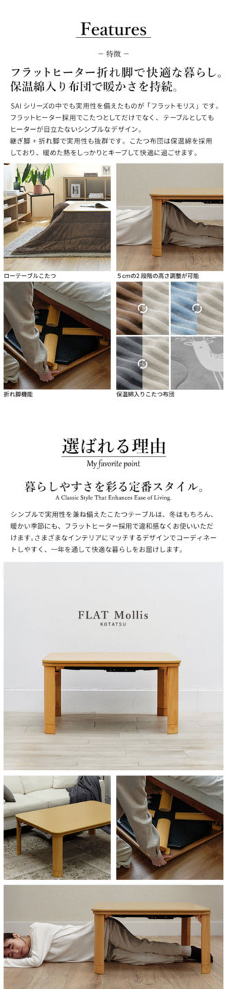 フラットヒーター折れ脚こたつ フラットモリス 75x75cm 保温綿入こたつ布団付き 2点セット SAI 彩 正方形 テーブル 折りたたみ コタツ 炬燵 フラットヒーター 掛け布団付き コーデュロイ リビング ローテーブル 節電 高さ調節 継ぎ脚 北欧 エルク柄 木製 木目 mu-i-3302188 店舗 カフェ ラウンジ ロビー ホテル 法人 電気こたつ こたつ 季節 空調家電 家電 北欧 モダン 家具 インテリア ナチュラル テイスト 新生活 オススメ おしゃれ