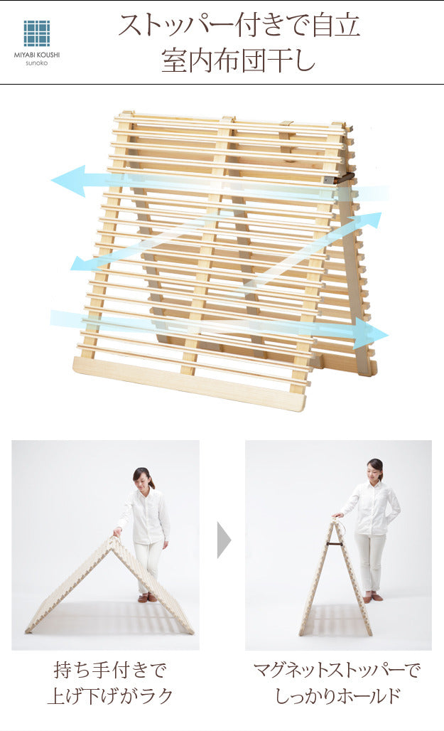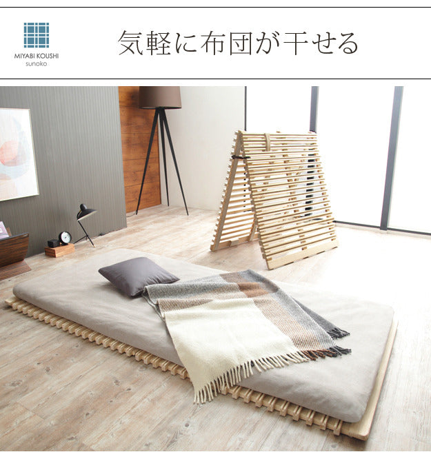グッドデザイン賞受賞 すのこベッド 折りたたみ シングル 通気性2倍で丸めて収納 「みやび格子」すのこベッド シングル 二つ折りタイプ 桐 天然木 すのこマット 布団干し 室内干し 省スペース 快眠 除湿 調湿 防カビ 梅雨対策 結露防止 通気性 軽量 mu-t0500017 店舗 カフェ ラウンジ ロビー ホテル 法人 ベッドフレーム ベッド 北欧 モダン 家具 インテリア ナチュラル テイスト 新生活 オススメ おしゃれ