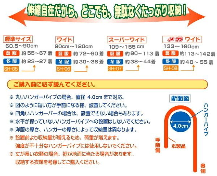| サイズ | ■収 納 目 安:冬物:約23?27着 夏物:約55?67着 ■商 品 サイズ:幅:60.5?90cm、奥行:6cm、高さ:12cm |