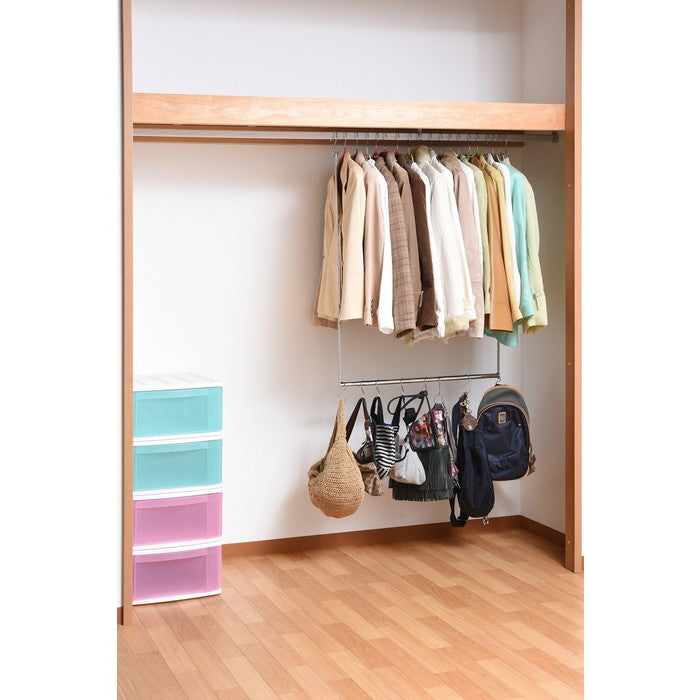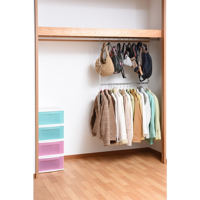 | 商品説明 | ●ご家庭のクローゼットや組み立て式ハンガーラックに掛けるだけで2段掛けに! ●伸縮式なので収納量によって幅調整可能! ●高さ5cmピッチで11段階調整可能 ●ハンガーバーの太さは約5.2cm頃まで対応 ●スペースはそのままでクローゼットの収納量がアップします。 |