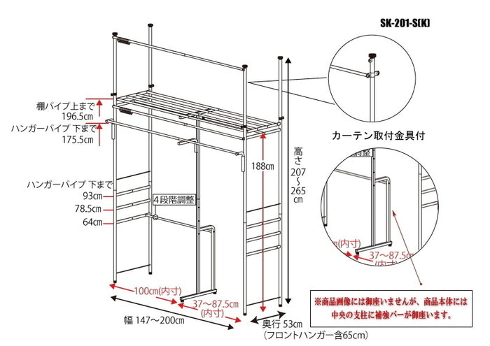 つっぱり クローゼット 壁面収納 ハンガーラック フロントハンガー付 幅147?200cm ツッパリ 突っ張り sei-sk-201-s 店舗 カフェ ラウンジ ロビー ホテル 法人 ハンガーラック コートハンガー 本棚 ラック カラーボックス 収納 家具 北欧 モダン 家具 インテリア ナチュラル テイスト 新生活 オススメ おしゃれ