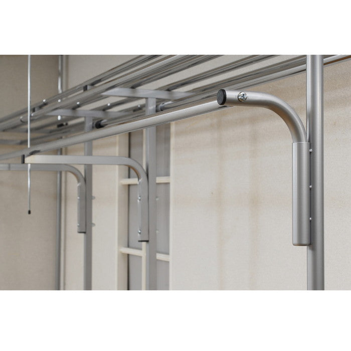 | サイズ | 幅:147?200cm奥行:53cm (フロントハンガー含65cm)高さ:185?243cm 全体許容耐荷重:約139kg ・上段ハンガー部分58Kg ・下段ハンガー部分18Kg ・フロントハンガー部分8Kg ・棚部分55kg 梱包サイズ/W 118 ×D 57 ×H 12.5cm |
