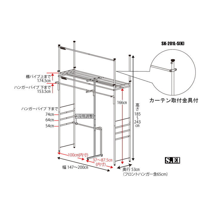 つっぱりハンガーラック 壁面収納 クローゼットハンガー フロントハンガー付 ロータイプS ツッパリ 突っ張り sei-sk-201l-s 店舗 カフェ ラウンジ ロビー ホテル 法人 ハンガーラック コートハンガー 本棚 ラック カラーボックス 収納 家具 北欧 モダン 家具 インテリア ナチュラル テイスト 新生活 オススメ おしゃれ