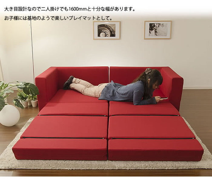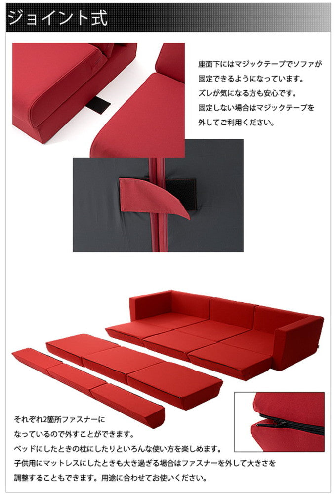 | 商品説明 | 安心の日本製! モールド成型でヘタリにも強い! 大きめサイズのソファベッド。 背を伸ばすだけでベッドやプレイマットに早代わり! ※ポケットコイル入りになりました! |