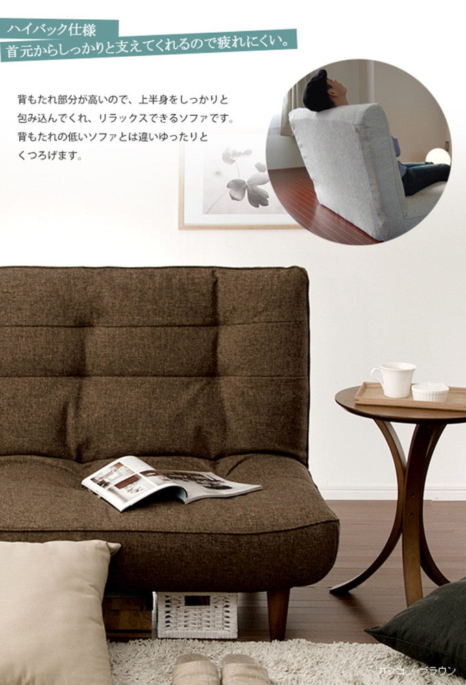 | 商品仕様 | 商品仕様 「lulu」 ハイバックソファA40 サイズ:W1210xD780?1220xH330?820mm SH305mm 材質:構造材:スチールパイプ クッション材:ウレタンフォーム(モールド成型) 生地:ポリエステル 表生地:ポリエステル 裏生地:ポリエステル100% 【安心の日本製】 背は3段階でリクライニングします。 梱包サイズ:200x1210x1230mm 重量:16kg |